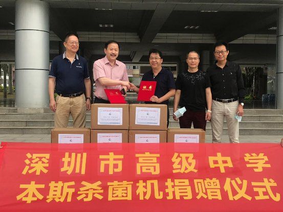 学校是国家培育人才之地,学生则是民族崛起和复兴的希望,在学生即将返校开学之际,本斯集团领导及全体员工心系莘莘学子的健康和学习环境,以及秉承回馈社会和实现企业责任感的价值观念,于4月22日向深圳高级中学捐赠一批120台 SK-01 新型杀菌机。4月27日深圳市高三、初三即将返校复课,这批杀菌机的捐赠为校园安全增添了强有力的保障,为学生和教员返校安心学习和工作保驾护航。