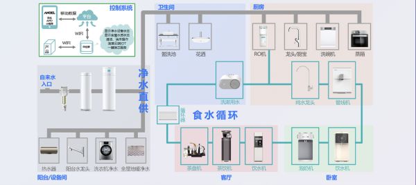 在产品上,安吉尔拥有行业内品类最全且最具品质的全屋净饮水产品,包含前置过滤器、中央净水机、中央软水机、末端净水机及管线机等;