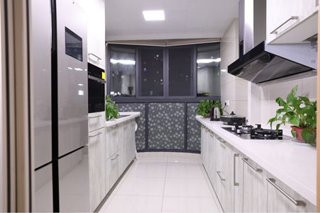 相对于开放式厨房,封闭式厨房更具挑战性,入户后如何才能形成美感与实用功能完美搭配?