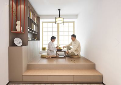 静心之道,治家之术。榻榻米是营造静坐冥想的地方,安放旧物时开启气撑上翻门给你的轻松感,多一阶台阶的仪式感,内放心水好物,心中却已然成空的禅空间。