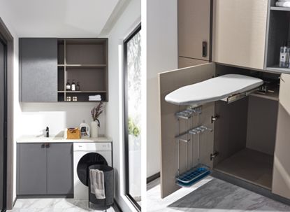 靠近阳光是生命的姿态。在阳台上,高柜上放置的是吸尘器,矮柜里存放着烫衣板,而半开放式可露可藏的移门吊柜存放着生活杂物,合理的布局使阳光能够洒满整个阳台。