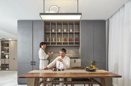 很多人认为中式只是重视感觉,就像中国的写意画,只可意会不可言传。它们往往只是抓住一个中式的要点。柏厨在中式与现代家居融合时充分考虑到了这一点,创新推出的“云涧”不仅表达完美出了中式的意境美以及美好的家居寓意,同时还镶嵌上了现代家居必要的实用性。“云涧”一出便风靡市场,引领橱柜家具行业新中式现代风尚。