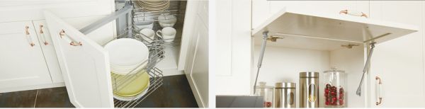 除了上下多组合吊柜、地柜已形成足够多的储物空间,还配以转角拉篮、碗碟柜等多功能五金件,合理规划每一寸空间,物品存取更加高效快速。物品种类越是繁多,越能体现出它的分类收纳能力,强大的厨房收纳系统表现出色。