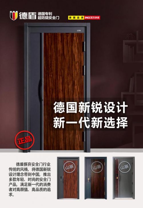 近些年,德盾超防撬安全门的发展令人瞩目。作为安全门行业优秀的新锐品牌,在安全门的性能、材料、外观等方面具有很强的优势,将智能、防盗、便捷、黑科技融为一体,为千万用户和家庭提供了安全守护。2014年,德盾将拥有德国专利技术的防撬钢(专利号:Nr.20 2015 100 212.2)安全门带进中国市场,并在此后数年的发展中,凭借德国工业的品质观念和符合国际标准的产品性能,不断进行创新研发。