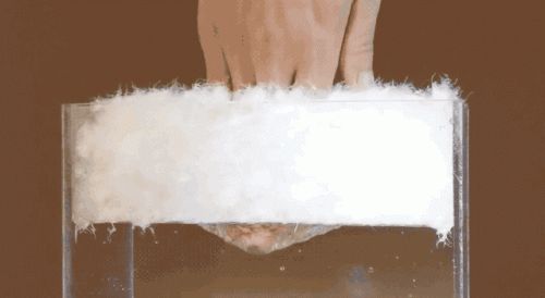 按压浮在水面上的鹅绒,跟水面就像有层结界一样,就是不混水里。