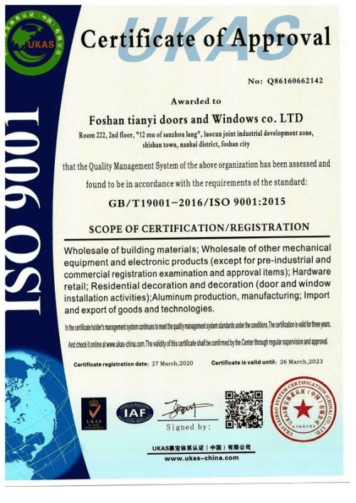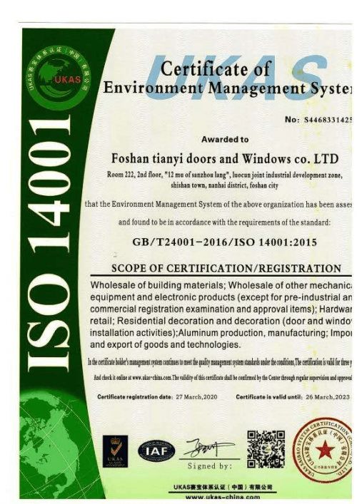 2020年是TaiTai门窗收获的一年,公司不仅在产品研发和品牌升级上都获得了成功,在品牌荣誉方面也先后获得:ISO14001环境管理体系认证证书、ISO9001质量管理体系认证证书、中国环境标志十环认证、国家3.15诚信企业、中国铝合金行业十大品牌全国质量信誉服务AAA级示范单位、中国优质名牌产品。