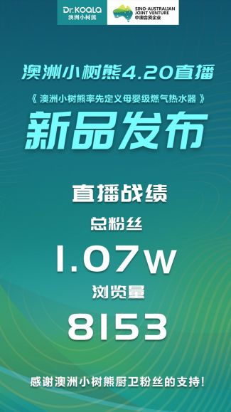 4.20《澳洲小树熊率先定义母婴级燃气热水器》直播新品发布圆满落幕!