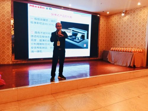 随后,美勒招商部部长肖远煜上台为大家详细解析美勒分体式集成灶的优势。肖部长表示美勒是侧吸下排式集成灶的专利发明人,拥有分体式集成灶的核心技术。分体式集成灶独有的特点:采用分体式设计,下排式烟机、灶具等各个部件组合成型的同时又可相对独立购买安装。消费者如若有安装集成灶的需求,却又不需要下方的消毒柜、蒸箱、烤箱,则可以考虑购买分体式集成灶。而且美勒分体集成灶真正的实现了模块化,烟机、灶具、消毒柜、蒸烤箱等各个模块更换自由;油路、电路、气路三个模块线路分离,在单个功能模块停止工作的情况下,不会影响其他功能模块的正常运作;集智能化操作于一体,各个功能模块可以同步指令、自由组合,而且拆装简单;维护检修更人性化,由于各个功能都是模块化接口,日常打理起来变得更加便捷,用户使用体验大大提升。