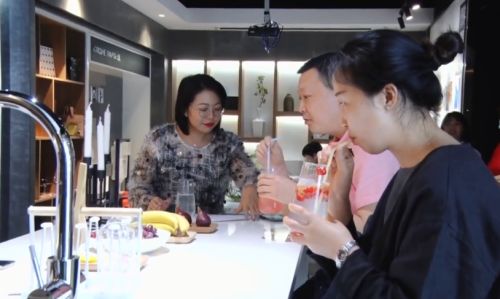 在高仪旗舰店,我们还见识到了高仪当红炸子鸡产品——高仪波蓝气泡水系统的魅力,没错,这里有一把可以直接出气泡水的龙头!只需轻轻按压水龙头的开关就可以出纯净水、半气泡水和全气泡水,而且气泡水出来就是冰的哦,夏天喝一杯让你瞬间神清气爽!