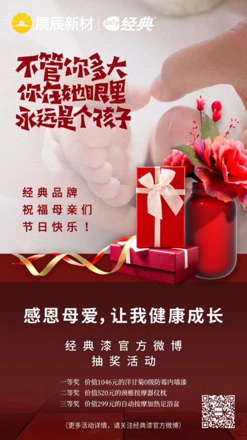 欲了解更多“感恩母爱,让我健康成长”活动详情,请移步到“经典漆官方微博”,经典品牌为您与您的母亲准备了惊喜奖品,快来把奖品带回家哦!