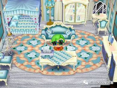 在这个游戏里,玩家还可以在浪漫欧式风格的房间里做着公主梦。浅蓝色调的家具搭配各色繁复花纹,奠定了整个卧室空间的华丽调性,仿佛闯入了公主的城堡世界。
