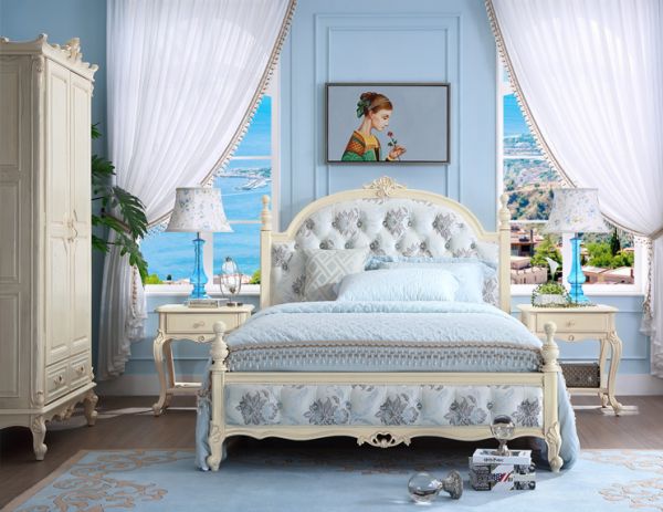 如主打新法式浪漫主义的知名品牌圣蒂斯堡,新颖而大气的欧美家具风格备受消费者喜爱。这款床品,简洁的先跳下,处处的小小花纹为空间增添一份典雅,与浅蓝色调家纺搭配精致而又仙气十足,尽显轻盈、温暖的氛围。