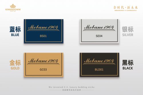 Mebane 1904系列22款新品又以四种不同颜色又分为:蓝标系列、银标系列、金标系列、黑标系列等四大系列,每种标识都有着不同的象征意义,KINGSDOWN金斯当以此来区分梅宾1904系列新品的尊贵度与奢华度。