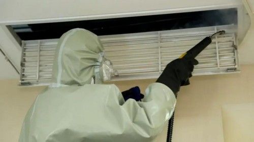 120℃蒸汽蒸:将高温已消杀的细菌全部从空调设备上剥离;