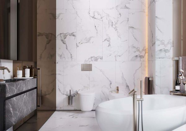 在家装建材中,大理石材料算是较昂贵和高端的材料了。由于其本身坚硬耐用的特性,很多家庭都会选择用大理石材料来装修卫生间。