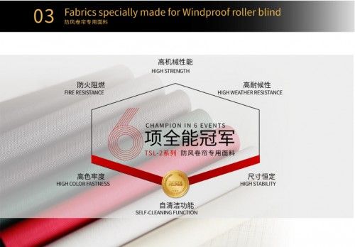 而且防风卷帘因其特殊性,对面料选择较为严苛,一般防风卷帘面料选择开孔率为6%的玻纤面料达到最好的使用效果,要求面料具有以下特点:1. 高机械性能2. 尺寸恒定3. 高色牢度4. 高耐候性5.防火阻燃6. 自清洁功能。
