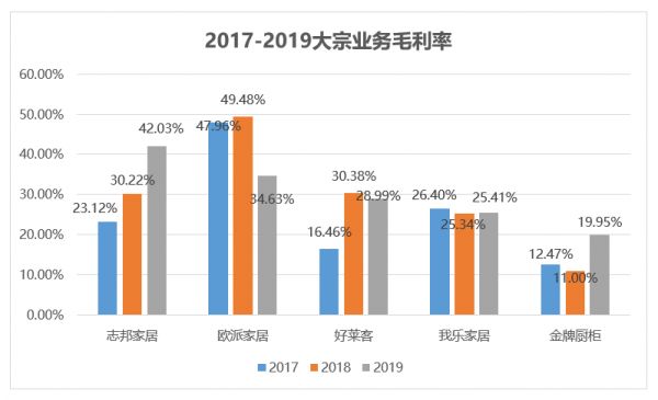 华创证券研究报告认为,我国主要上市定制家具公司毛利率水平呈上升趋势,其中大宗业务毛利率变动幅度相对大,这种情形在二线定制家具龙头公司中表现更为明显。主要原因在于二线定制家具企业面对大宗客户时议价能力相对弱,客户项目或订单范围等变动对公司大宗毛利率形成较大影响。