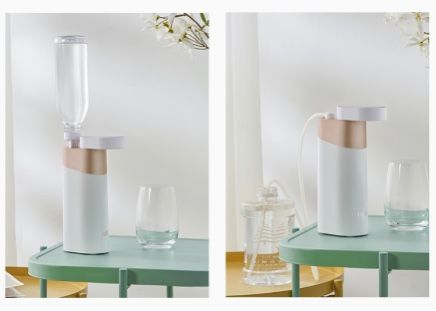 另外这款饮水机有两种接水方式,支持250mm-500ml的瓶装水,目前市面上大部分矿泉水都能轻松搭配,也可以用饮水机自身配备的软管抽取桶装水,不管身处何方,用起来都十分方便。
