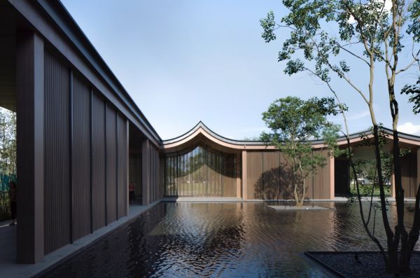传统文化的延续并非模仿与复刻,理应进行地域性探索、城市记忆的再创造并构建集群情感的纽带。该项目沿用地缘文化的特质,建构历史文脉的现代化衍变故事。最终利用建筑设计的巧思营造出“名帖拜谒、礼序迎宾、又见君贵、憩园雅集”的书院式生活场景,促使到访者重新开启对于城市生活的遥想。
