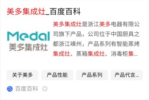 2020年5月12日美多集成灶百度品牌专区重磅上线了!百度一下 “美多集成灶” 升级生活。