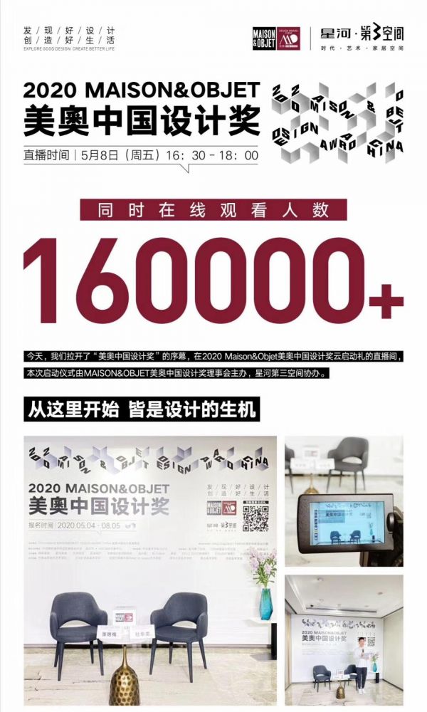 2020年5月8日,MAISON&OBJET美奥中国设计奖报名云启动礼拉开序幕。本次的云启礼仪式由MAISON&OBJET美奥中国设计奖理事会主办,星河第三空间协办。由此开启中国原创设计向世界舞台大步迈进的报名篇章!
