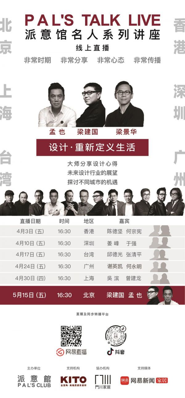 5月15日(周五)16:30,2020年派意馆名人系列讲座第六期(北京站),梁建国、孟也、梁景华将齐聚网易直播间,与你一起换种方式重新定义“家”,重新定义“生活”。