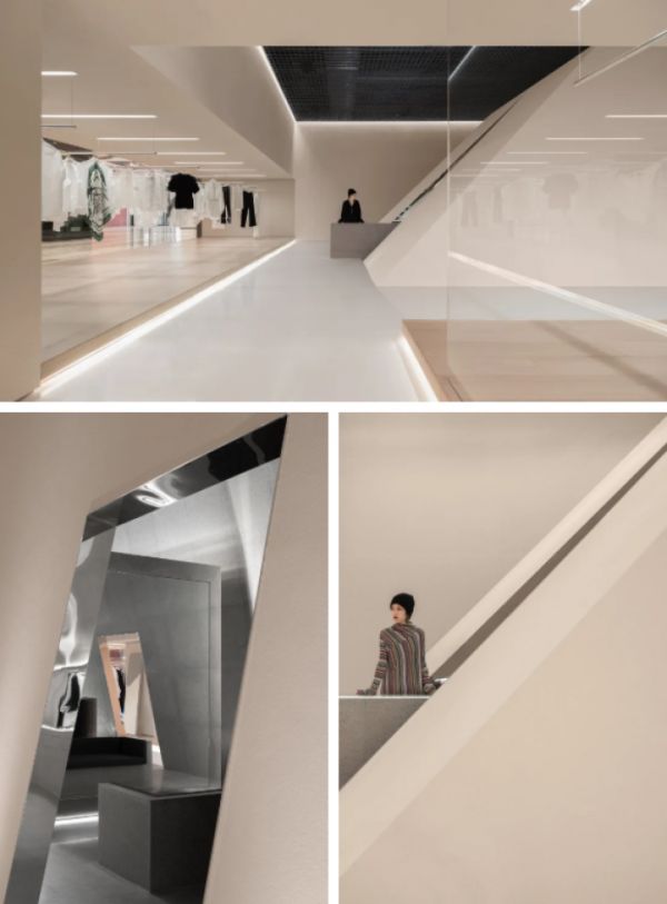 从建筑维度思考,使店铺成为探索身体和空间之间关系的媒介。为了致敬SND迈向国际代表性买手店之列的新起点,设计师在其中加入了“里程碑“的设计概念寓意:教堂式的建筑形制契合其“在个性与趋势中找到平衡”的品牌信仰,两边的开放式陈列区形似广场。以功能品质与视觉表现的深度创作,实现了品牌空间与城市生活更大尺度的自由对接。