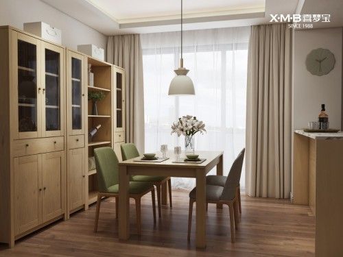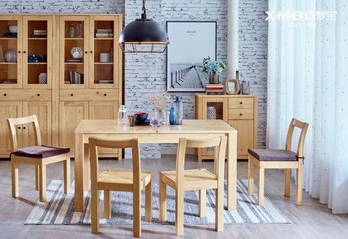 喜梦宝日式餐桌用料厚实,结构稳固,严谨简洁的线条,留住了日式家具的简约朴素。