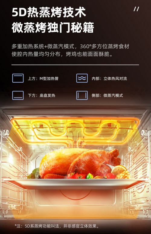 看似简单的微波功能却有着同行无法逾越的技术壁垒。二者加热原理完全不同:蒸烤是通过电发热管加热介质来加热食物,食物由生变熟是由外到内一个过程;微波加热原理是将电能转化成高频电磁波,电磁波高频震荡分子,让分子自生摩擦发热,食物由生变熟是由内到外的一个过程。