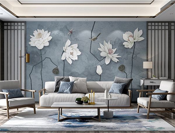 荷花系列墙布-《墨荷》选择清雅高洁的荷花作为题材,让人联想到“出淤泥而不染,濯清涟而不妖”;更有“蜻蜓立上头”,表示对来客的尊重、欢迎之意。墙布反应出的,不仅是山水画的幽远意境,更是主人的一番心境。