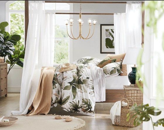 热带元素搭配原始雨林色调,这套床品宁静又富有生机,如为卧室洒下一片树荫,阻挡夏日骄阳,心理上带来雨林木屋的度假氛围感,惬意热烈,能量活跃。