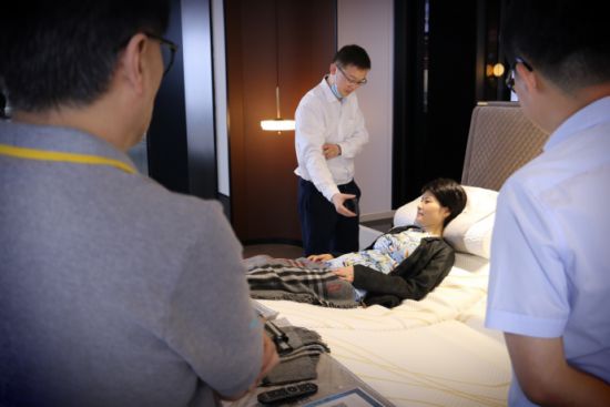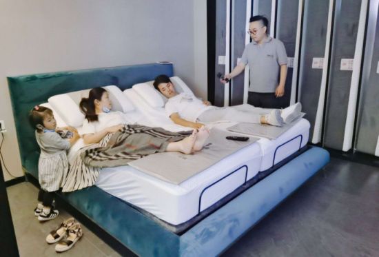 浙江省建筑装饰行业协会会长 贾华琴 到店体验智能床(右2)