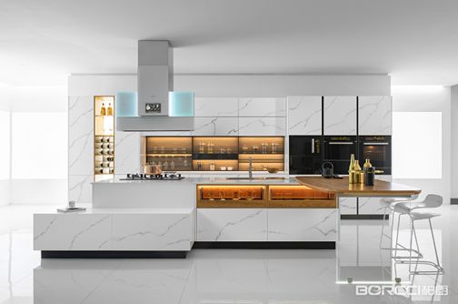 整体橱柜的概念起源于欧美,于20世纪80年代末90年代初传入国内,真正的本土发展时间并不长。一开始业内很多人都借鉴以意大利或德国为主的欧式橱柜流派,再加之形状、配件和颜色方面很容易被复制,市面上同质化的产品很多。柏厨最先从这场损耗式竞争中意识到原创设计对于企业发展的重大意义,打造以设计为主的核心竞争力,形成独具品牌特色的设计理念。此次荣摘最成功设计大奖的“礼白”是柏厨新中式风格成功产品的杰出代表,它的设计灵感来源于中国传统瓷器的墨纹,首创仿大理石纹的烤漆技术,整体设计效果大气写意,颇具诗仙贵妃斟酒,力士脱靴的恣意潇洒,置身其中像是穿越时空与历史的相遇,流传千年的诗风尽在家中的咫尺天地。