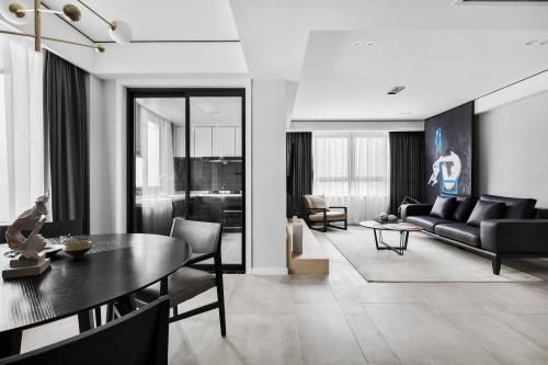 无需繁杂造型与装饰,干净、通透的空间设计,运用简洁利落的线条,勾勒空间层次,巧妙运用点、线灯光丰富空间,烘托纯粹氛围。不同平面材质的肌理及色彩搭配,空间层次感凸显,打造有品质感的简洁现代。