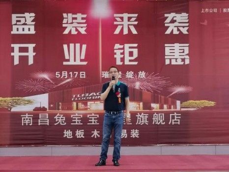 5月17日,兔宝宝地板南昌五星店盛大开业!兔宝宝地板总经理蔡荣根先生亲临开业现场,与经销商代表和广大消费者齐聚南昌巨汇建材市场,共同见证这一璀璨时刻的到来。