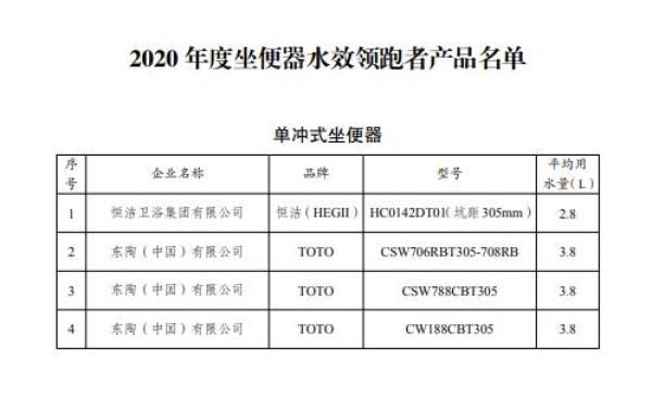 恒洁、箭牌、法恩莎等上榜2020年度坐便器水效领跑者产品