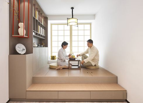 榻榻米大都以为来自日本异域风格,资料证实,榻榻米源自中国,兴盛于汉代再传到日本,然后被重视和传承。在柏厨集成家居“云涧”的新中式榻榻米茶室中,融合了古典和现代元素,精美低调不失时尚感,显现极高生活品质。小茶台搭配榻榻米软藤垫,冬暖夏凉。在墙面还设置书柜书架,整个空间弥漫着书香和自然茶香的气息,地面设计了置物收纳柜,满足多种收纳需求。