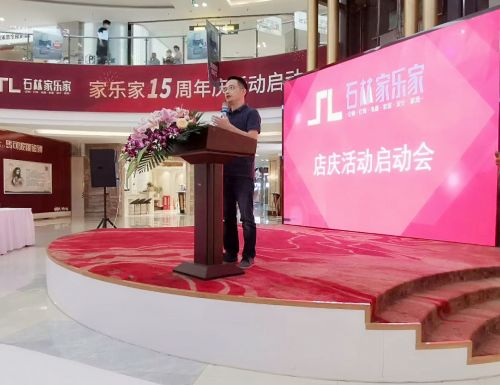 首先登台的是石林家乐家运营总监刘文先生做活动开幕发言,代表商场全体员工表达各商户对活动的大力支持和配合表示衷心的感谢。拥有十几年商超运营管理经验的刘总,对本次15周年庆典活动也是极为重视,做好运营管理统筹分工。并于会上提出“深耕市场、共享资源、强化营销能力”为目标,有信心有能力的再做下一个“15周年庆“,给予会上所有品牌商户极大的鼓舞与动力。