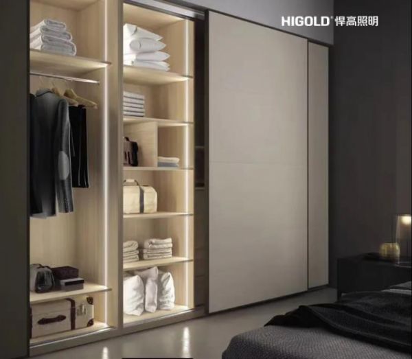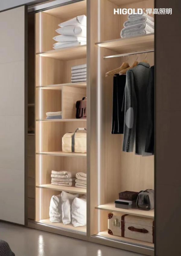 悍高照明极窄灯条,让灯具融入卧室衣柜之中,工艺精湛,隐藏性极高,通过对灯具外观和安装方式的设计,能让灯具的安装也不再突兀,也能让整个收纳空间看起来整齐明亮,不但使用方便,也是高品质生活的象征。