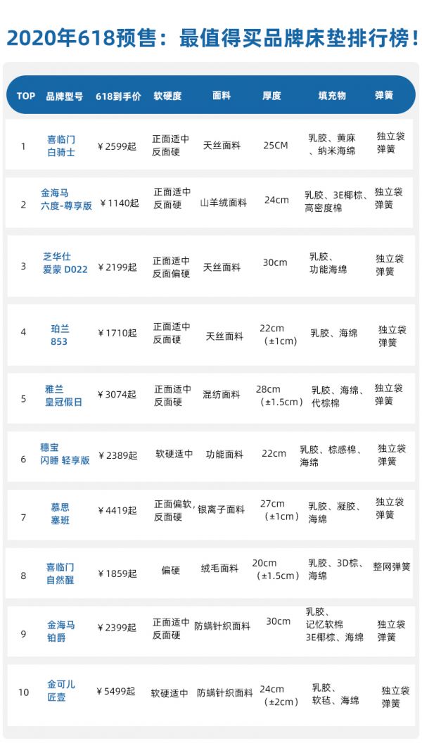 今天,先给大家展示的是床垫类目TOP10爆款单品,罗列其中重要参数,给正在选购床垫的你作为参考。