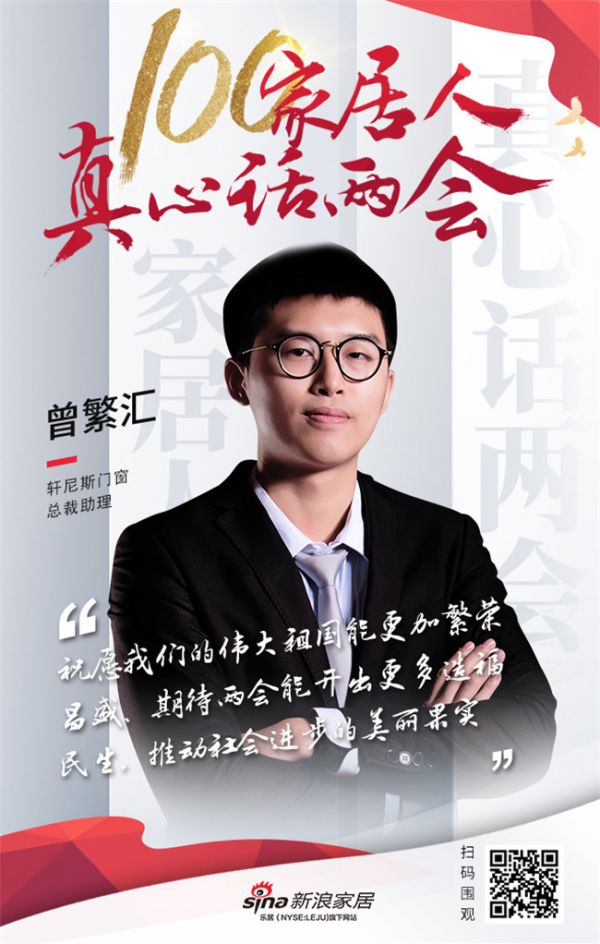轩尼斯门窗总裁助理 曾繁汇:“祝愿我们的伟大祖国能更加繁荣昌盛、期待两会能开出更多造福民生,推动社会进步的美丽果实。”