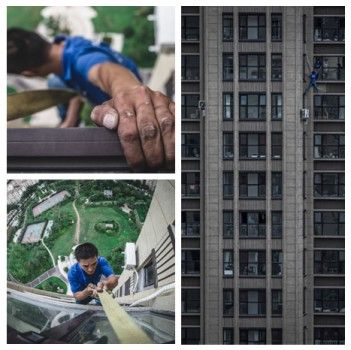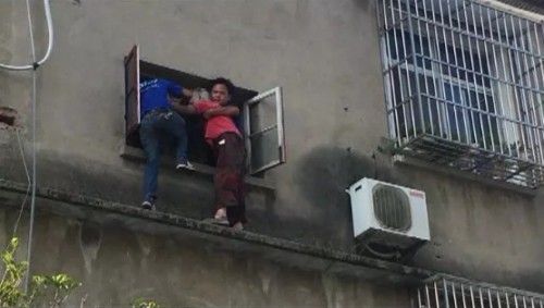 徒手爬窗救人的小伙儿找到了,这种特技来自日常工作