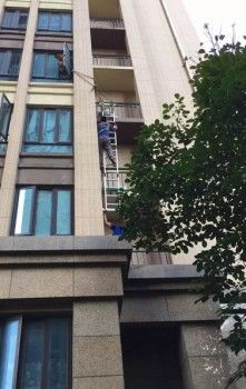 烟台芝罘区这间公寓外墙是没有落脚点的大理石,无法正常安装,海尔服务兵借助晃动的高空吊篮,每天工作12小时,4天安装85台空调,提前完工。