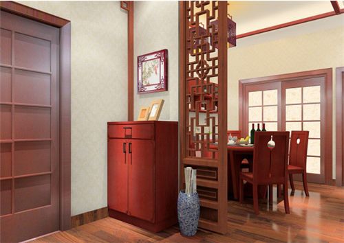 3、还可以设计一个玄关在玄关的地方上设计一个精致的屏风,如果可以在屏风上放一张大象,这样的图形表示吉祥之意,还能让家庭的风水变得更加好。但一定要选择木制大象或铜质大象,如果想摆放绿植,可以选择万年青,富贵龙和凤尾竹灯等一些能有阳性植物。
