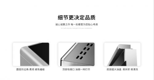 C801A油烟机具有一级能效认证,为你精打细算,在节能的前提下为你解决油烟问题,实在贴心。