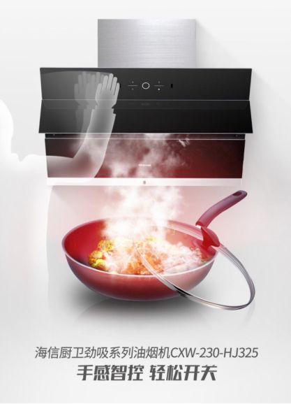 海信厨卫HJ325油烟机,具有体感操控功能,通过挥手就可智慧操控烟机,不必按键接触,既卫生又方便,家里老人也会用啦~即便遇到突发状况我们只需一挥手就可轻松搞定。