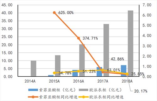 图表:欧派衣柜和索菲亚橱柜近年发展趋势情况