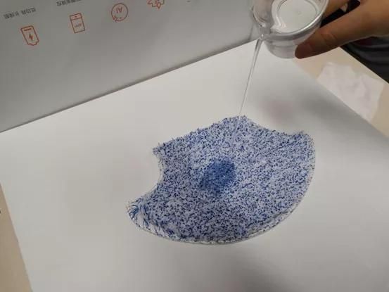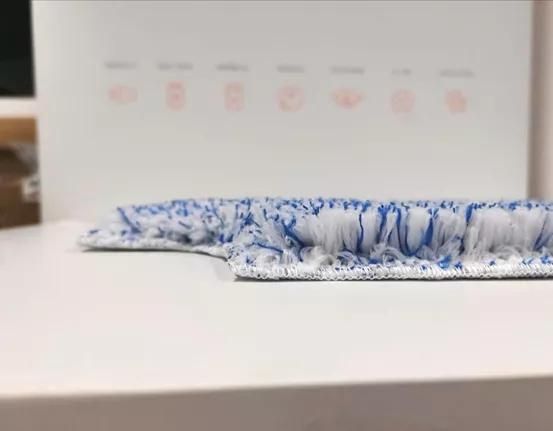 “我们做过多次试验,250ml左右的水倒入拖布,再将它拎起来倒置,不会滴水。”吴万水说道。这块拖布由7种材料组成,植毛密度高,可吸水吸油、且附着力强。