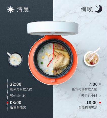 除此之外,伯可福bokuk脱糖电饭煲还具备煮粥熬汤以及全天候24小时预约的功能。
