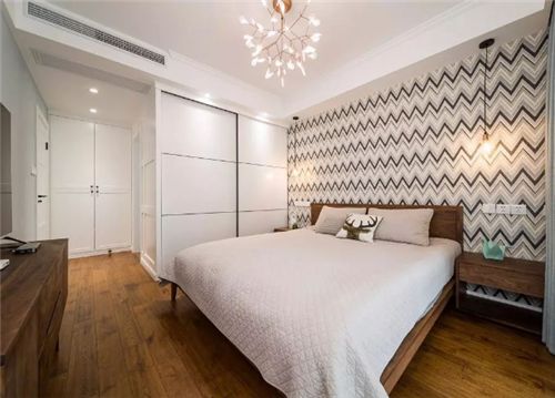 再来就是主卧,在主卧里一般要放上一张两米左右的床,顺带两个床头柜,还要配搭上一个精致的衣柜,一个宽敞的飘窗和一个多功能的梳妆台,剩下的就是走道空间,一般空间可以保持在15平米之间。